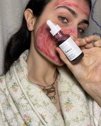 La caja contiene el frasco el cual tiene un Exfoliante facial de 10 minutos con AHA 30% y BHA 2% que combate imperfecciones y devuelve el brillo ✨. Incluye Pimienta de Tasmania 🌿 para calmar la piel y Vitamina B5 para una recuperación visible y suave.