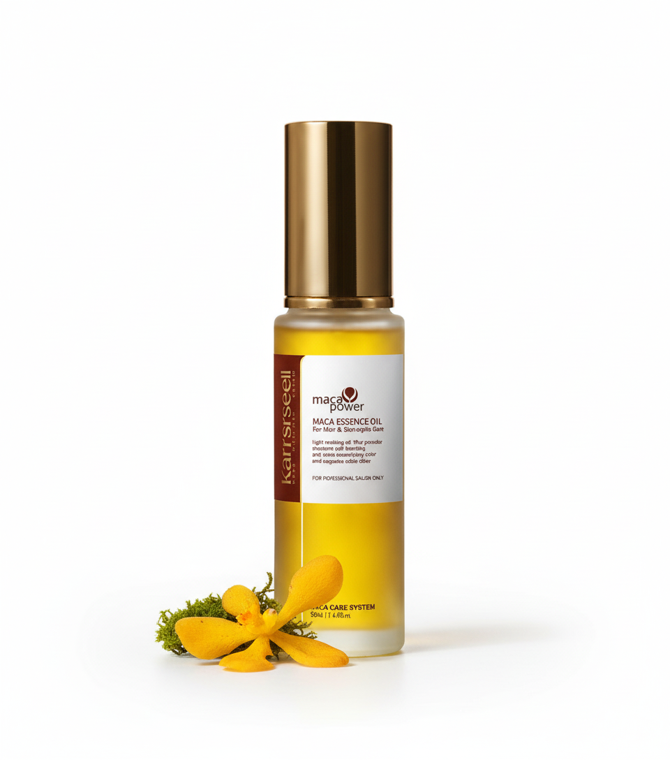 A BASE DE ACEITE DE ESENCIA DE MACCA, ACEITE DE MACADAMIA, ACEITE DE ARGAN, ACIETE DE ARBOL DE TE, ACEITE DE MANZANILLA, EXTRACTOS DE ALOE Y ALGAS