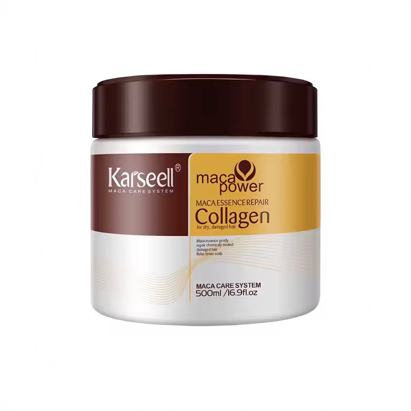 TRATAMIENTO KARSEELL ORGINAL A BASE DE ESENCIA DE MACA, COLAGENO CONCENTRADO Y ACEITE DE ARGAN MARROQUI REGENERA EL CABELLO DAÑADO DE RAIZ A PUNTAS REPARA LAS FIBRAS CAPILARES Y RELLENA LAS CAVIDADES DEL CABELLO CABELLO HIDRATADO, SALUDABLE, SUAVE Y CON BRILLO CONTIENE 500ML |